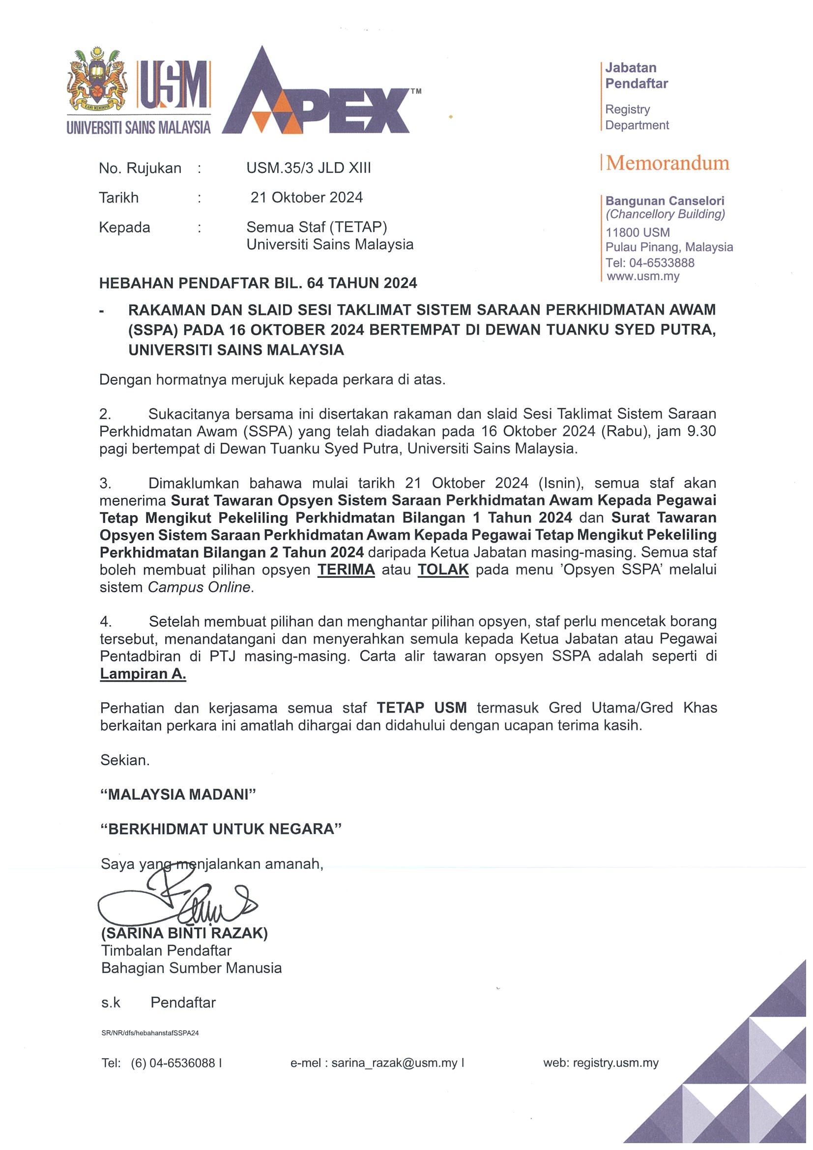 Rakaman Taklimat di atas adalah yang berlangsung di Dewan Tuanku Syed Putra pada 15 Oktober 2024.
